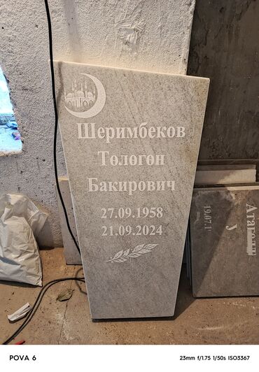 • светлая плита с гравировкой мечети и декоративной ветвью;