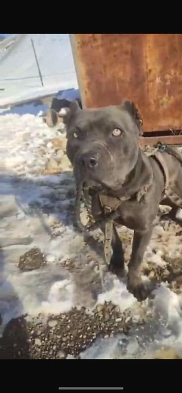 Номер Собака крупного атлетичного типа, черно-белого окраса с симметричной белой полосой на морде. Купированные уши, мощная шея с цепным ошейником, глубокая грудь и развитая мускулатура. Корпус ком...