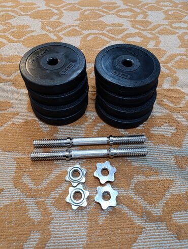 - Набор дисков на каждую гантель (на фото — несколько блинов на стороне)