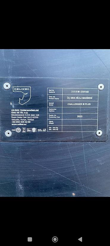 - Тип: 3‑рядная силосная машина (Üç Sıra Silaj Makinesi)