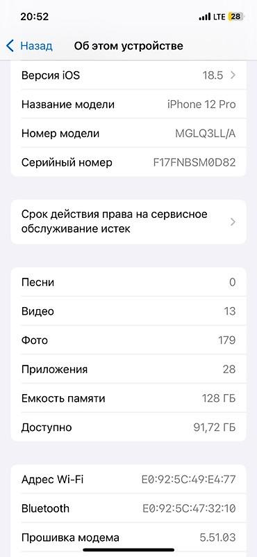 - Память: 128 ГБ, доступно около 91,7 ГБ (см. скриншот “Об этом устройстве”).