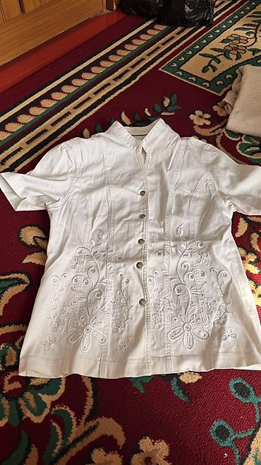 Белая женская блузка с коротким рукавом и вышивкой.