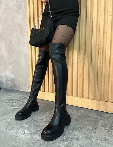 Высокие женские сапоги на танкетке - Цвет: черный - Материалы