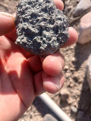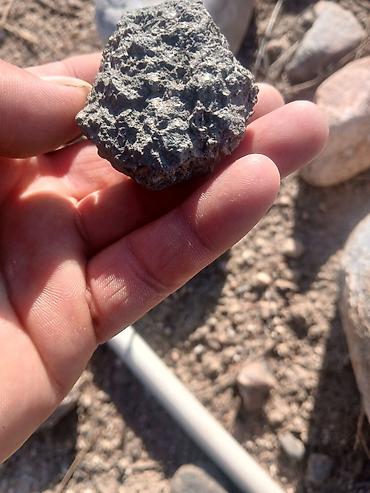 - Небольшой фрагмент серо‑темного камня с выраженной зернисто‑пористой поверхностью.