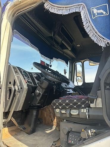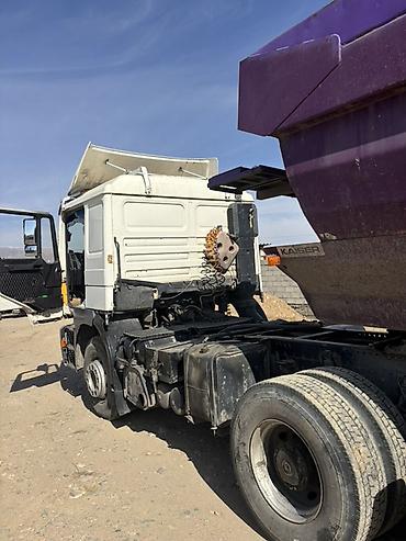 Подходит для работы с самосвальными, тентованными, рефрижераторными и другими полуприцепами. Надежный тягач для магистральных и строительных задач. Регистрационный номер в кадре KG (Кыргызстан).