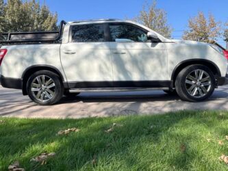 Пикап SsangYong (небольшой кузов с цельной надстройкой), цвет белый, черные легкосплавные диски. Кузов и экстерьер: - Двухрядная кабина (4 двери), полноценные сиденья второго ряда. - Фирменная реш...