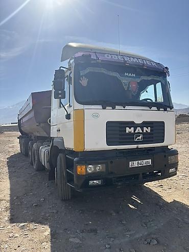 Подходит для работы с самосвальными и тентованными полуприцепами, перевозки сыпучих и генеральных грузов на средние и дальние расстояния. Номерной знак KGZ на фото.