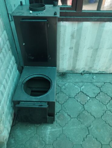 Металлическая твердотопливная печь-буржуйка/котёл самодельной конструкции. Особенности и устройство: - Материал: толстостенная сталь, сварная конструкция. - Топочная камера с дверцей спереди, отде...