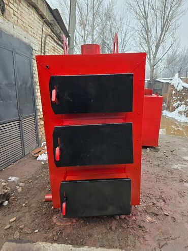 Твердотопливный металлический котёл/печь для отопления. - Материал: сталь, сварная конструкция - Топливо: дрова, уголь, брикеты - Две дверцы: верхняя — загрузка топлива/топочная камера, нижняя — з...