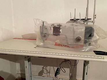- Прямострочная машина BRUCE с сервоприводом (голова упакована). Панель управления, двухкатушечная стойка, стол с линейкой, педальный привод, нижний транспортер, централизованная смазка.