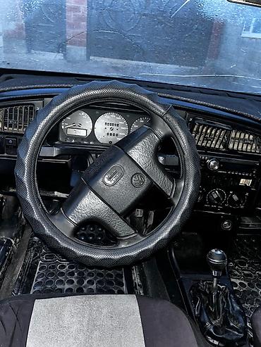 Volkswagen Golf II, хэтчбек 3 двери. Механическая коробка передач. Передний привод. Интерьер с тканевыми сиденьями, установлены серо‑черные чехлы на переднем и заднем ряду, подголовники, резиновые коврики. Рулевое колесо с декоративной оплёткой, приборная панель со спидометром до 220 км/ч и тахометром. Центральная консоль с магнитолой, блоком управления печкой и вентиляцией, прикуривателем. Ручник и рычаг МКПП в центральном тоннеле. Сзади — дворник на пятой двери, эмблема Golf, выхлопная труба, номерной знак KG. Подходит для городских поездок и хозяйственных задач, компактный кузов и практичный салон.