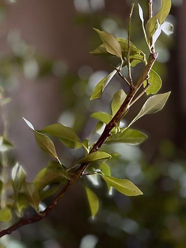 Комнатное растение в горшке – цитрус (возможен лимон/апельсин по листу и форме кроны). - Высота растения: около подоконника, вытянутая крона с несколькими основными стеблями. - Листья овальные, гл...