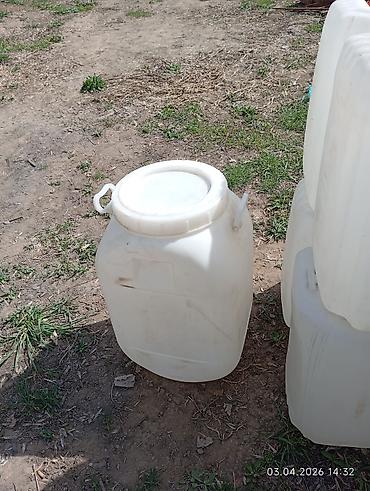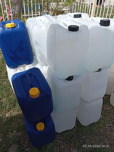 - Типы: прямоугольные канистры с крышкой/пробкой, синего и белого цвета; бочка-канистра с широким горлом и ручками.