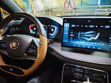 - Большой центральный сенсорный дисплей с русифицированным интерфейсом: климаты с раздельной (DUAL) зоной, управление обогревом/вентиляцией сидений, режимы кондиционирования, быстрые плитки приложений.