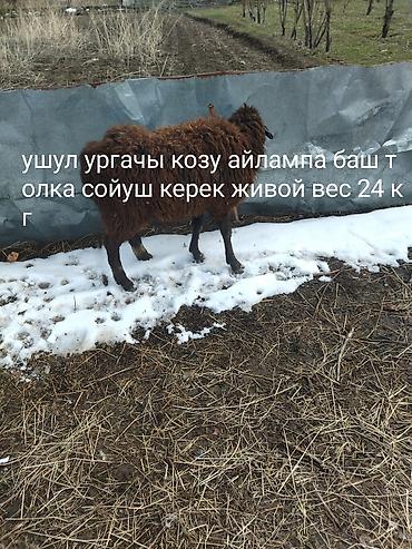 Продаётся ургачы козу (самка-ягнёнок). Живой вес: 24 кг. Подходит на айлампа баш толка, на забой. Цвет шерсти — тёмно‑коричневый.
