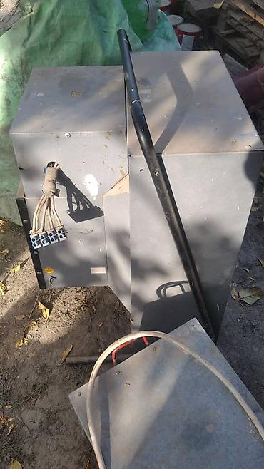 Комплект на фото: основной блок с вентилятором и нагревательными элементами, соединительные кабели, клеммы. Подключение к трёхфазной сети.