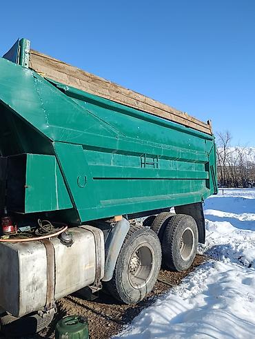 Самосвал с оранжевым кузовом, предназначенный для перевозки сыпучих материалов. Оснащен двойными задними колесами для улучшения устойчивости и грузоподъемности. Задние фонари и брызговики обеспечив...