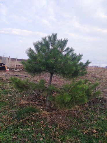 - Сосна (вероятно крымская/черная): компактная крона, длинная темно‑зеленая хвоя, выраженный центральный проводник. Подходит для одиночных посадок, аллей, живых изгородей. Засухоустойчива, неприхотлива к почвам, хорошо переносит городской воздух и обрезку формовкой. Рекомендуемая посадка на солнечном месте, дренированная почва; полив в первое лето после пересадки, мульчирование приствольного круга.