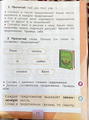 - Оформление: полноцветные иллюстрации, задания для чтения, письма и речевого развития; упражнения на составление предложений, работу с текстом, подбор заголовков, понимание связности речи, различение звуков и букв.