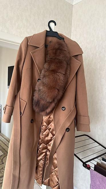 Пальто женские и шуба 1) Двубортное пальто цвета капучино с поясом -