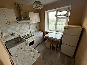 - Холодильник, обеденный стол у окна, два табурета