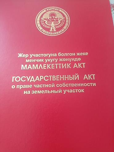 Государственный акт о праве частной собственности на земельный участок (Кыргызская Республика). 5сот. телефон: Адрес; Выше село Чон -Далы до Аламединского рынка 20км срочно