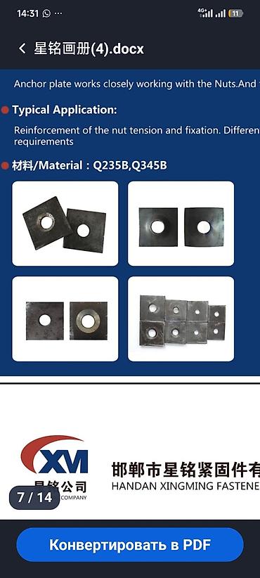 - Квадратные анкерные пластины.