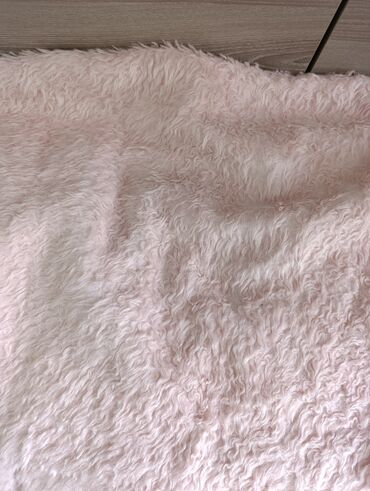 РозовыйПокрывало на кровать из искусственного меха с оборкой.