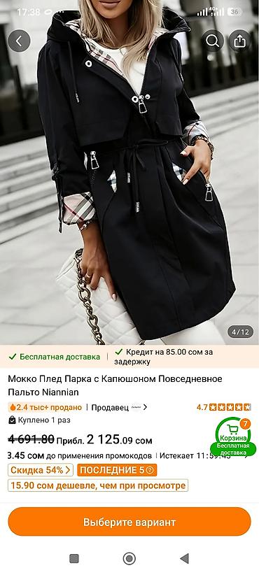 Женский плащ-тренч с капюшоном, цвет черный.Он маломерит . написано