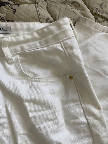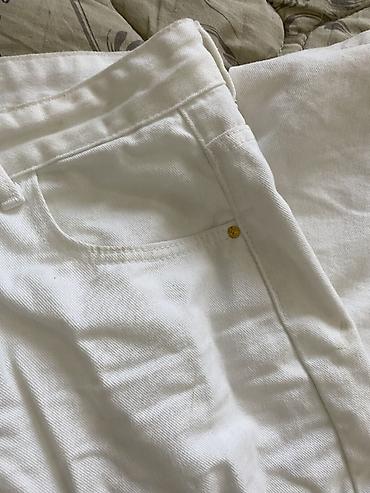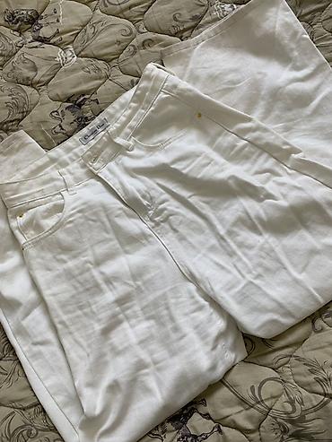 Белые брюки/джинсы JIANYU, прямой свободный крой. - Высокая посадка. - Застёжка: молния и металлическая пуговица. - Пять карманов (два спереди, маленький монетный, два сзади). - Шлёвки под реме...