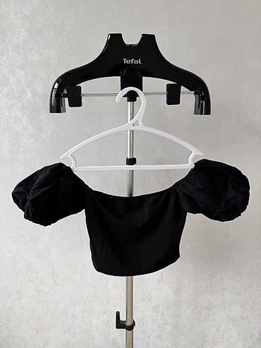 - Кроп‑топ с открытыми плечами и объемными рукавами‑фонариками, эластичная линия плеч.