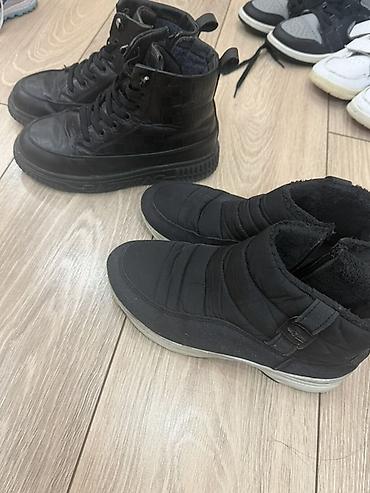- Зимняя обувь: высокие черные ботинки на шнурках с утеплением; утепленные полусапожки/дутики черные с молнией сбоку и меховой подкладкой.