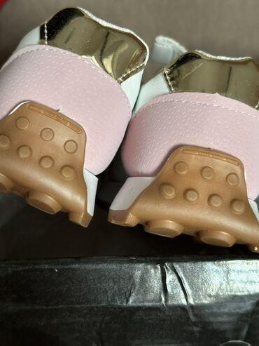 - Декор: боковая золотистая «стрела/буква», вставки по мыску и пятке