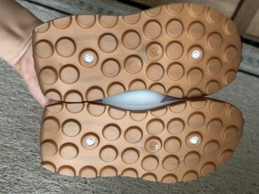 - Подошва: рыжая резиновая, амортизирующая, с рельефом «пупырышки» для сцепления