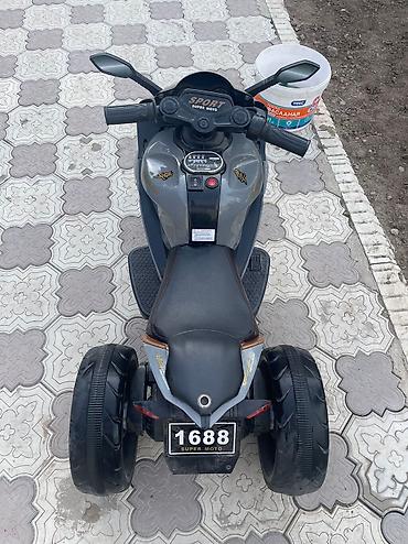 Детский электромобиль. Нужно купить аккумулятор (цены от 1500 до 4000 сом), в магазине Delta. kg или любом другом. Машинка работает, всё функции работают. Пульт управления, зарядное устройство и 2...