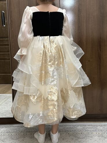 Нарядное детское платье в кремово-молочном оттенке. Подойдёт от 7 до 11 лет . б/ у цена 1500 сом вместе с туникой - Размер: на вешалке указан 56 (ориентируйтесь по меркам/фото). - Верх: плотный...