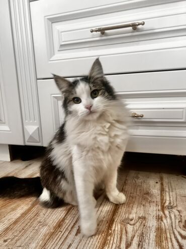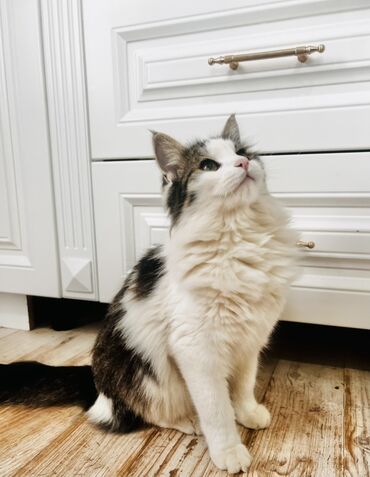 Пушистая кошка с выразительными глазами и длинным хвостом. Возможно смесь с мейнкуном! Мальчик 8 месяцев