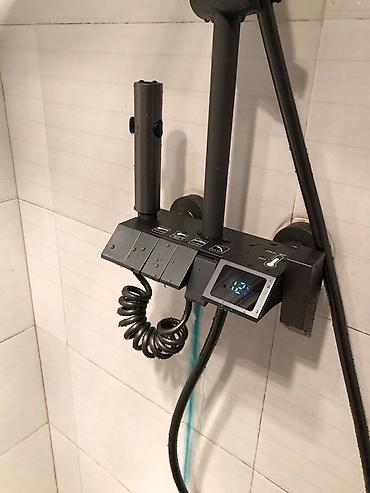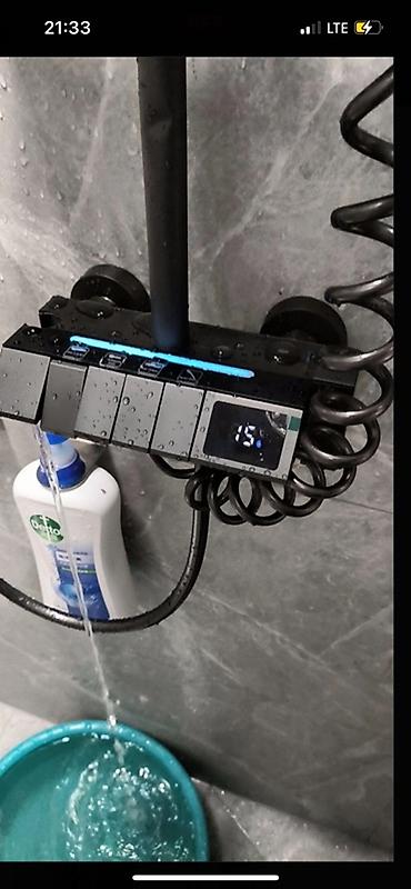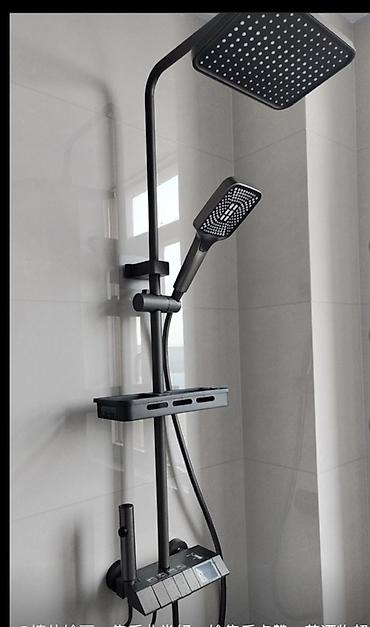 Функциональная и стильная система: регулировка высоты стойки, удобное переключение режимов на смесителе, продуманная полка для хранения.