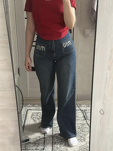Зара джинсы Zara Новые Джинсы Одежда женская Брюки Зара 36 размер Момс На высокой посадке Большемерят Новые Синие Голубые