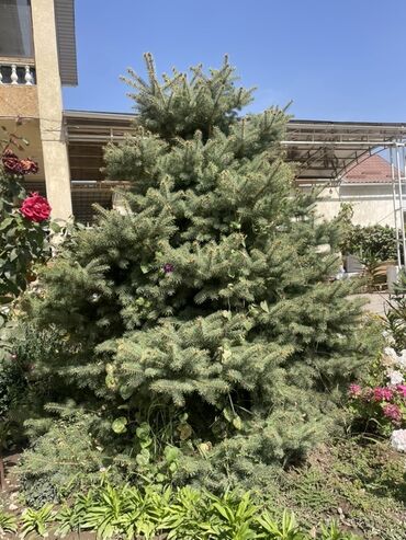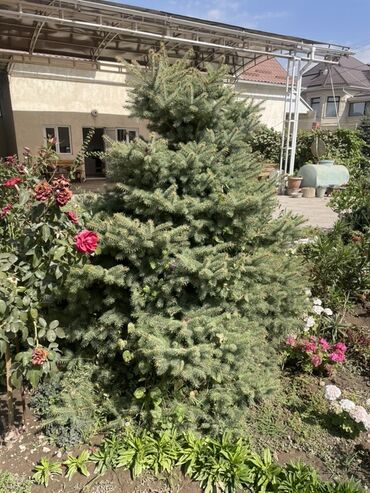 Ель колючая (Picea pungens), сорт «Глаука»/взрослая, густая, с