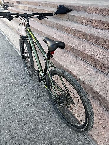 - Рама: алюминиевая, хардтейл, цвет темно‑зеленый с салатовыми акцентами