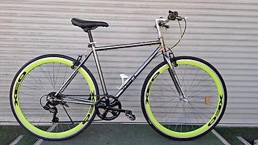 Городской шоссейный велосипед с прямым рулём и колесами глубокого