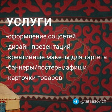 Графический дизайн. Качественный дизайн любых материалов, этикеток, полиграфии, рекламы Моушн дизайн, анимация . Язык кыргызский, русский, английский .Без вредных привычек.