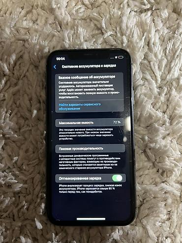 - Аккумулятор: максимальная емкость 72% (сообщение системы о необходимости обслуживания аккумулятора — см. фото).