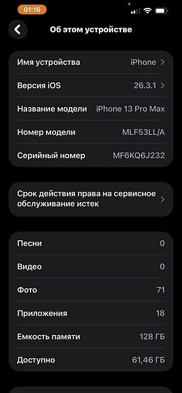 - Модель: iPhone 13 Pro Max (номер модели MLF53LL/A).