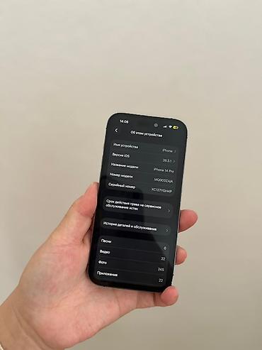 - Экран «Об этом устройстве» с названием модели iPhone 14 Pro