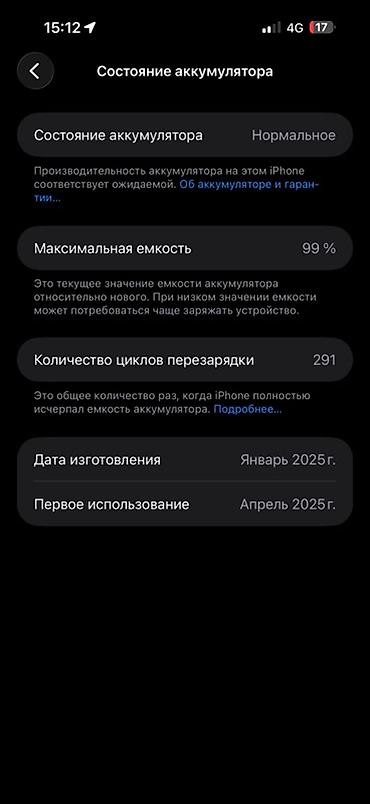 - Состояние аккумулятора: нормальное, максимальная емкость 99%