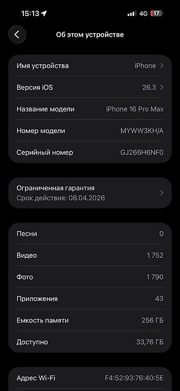 - Модель: iPhone 16 Pro Max (номер модели MYWW3KH/A)