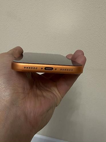 IPhone с OLED‑дисплеем и Dynamic Island, оранжевый цвет корпуса.