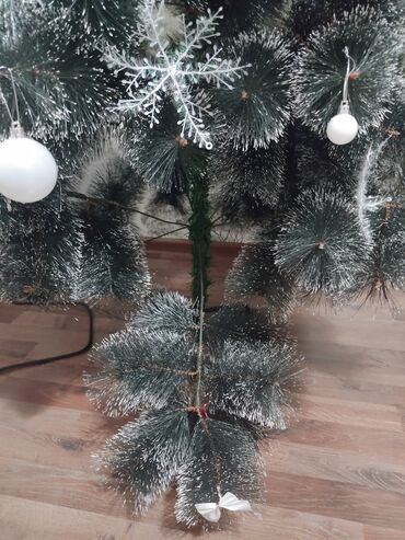 - Материал хвои: ПВХ/леска (плотные длинные иголки, блестящий эффект).